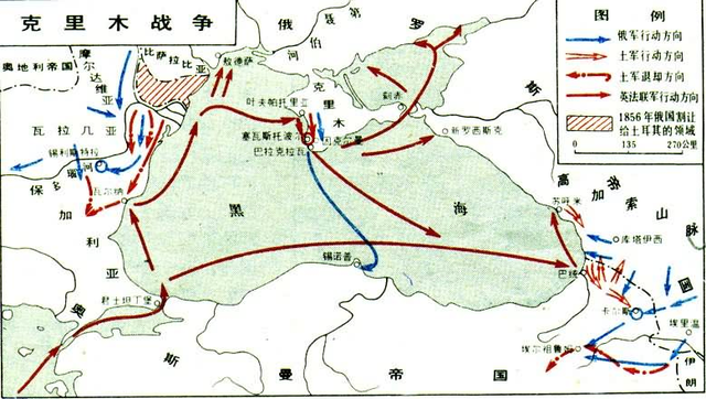 1856年,克里米亚战争以俄国惨败收场。俄国调转扩张方向,趁当时英法对华的第二次鸦片战争,逼迫清朝割让了包括库页岛在内的100余万平方公里领土。