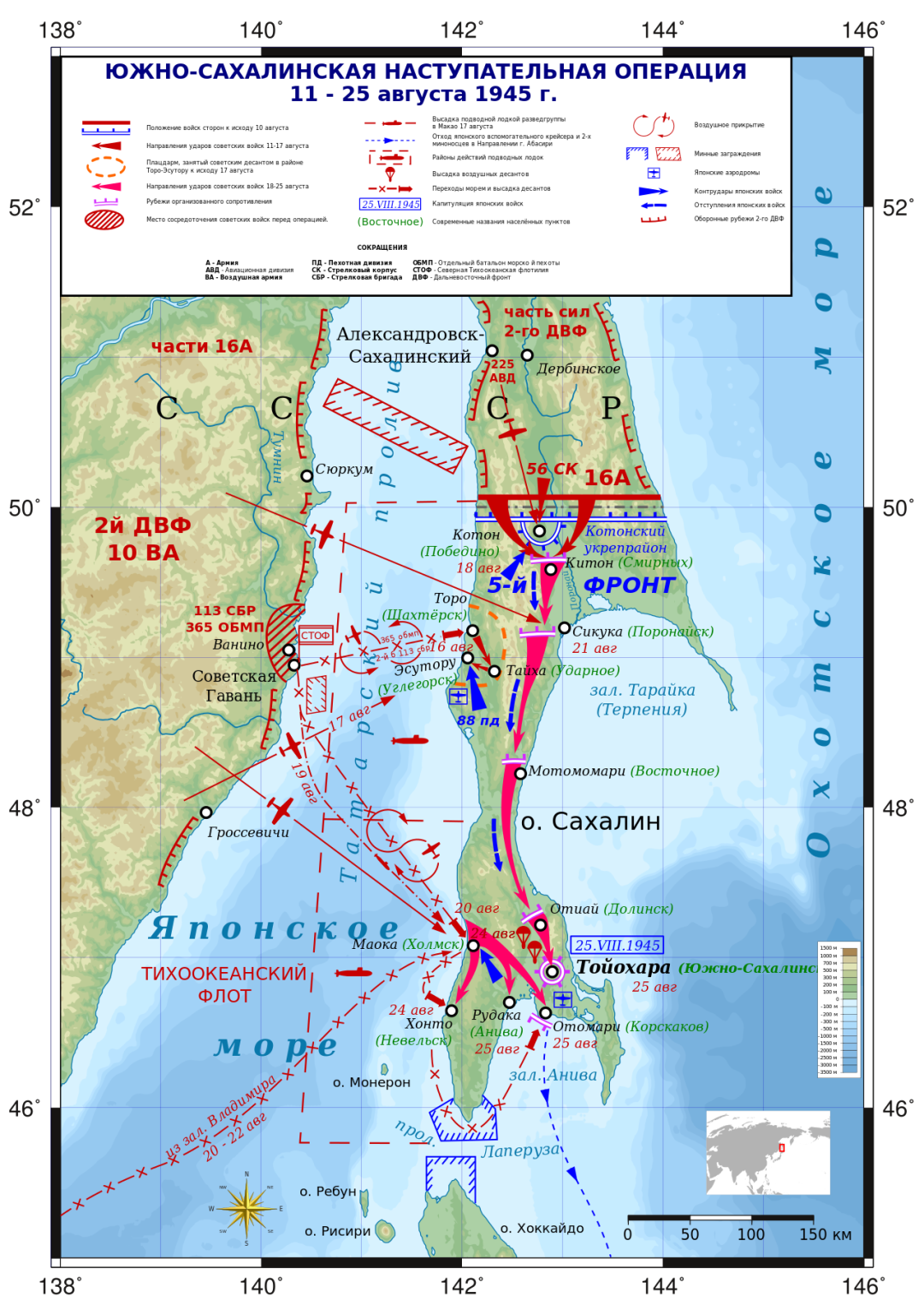 当月25日,苏军占领库页岛全境。9月1日,千岛群岛全境亦被攻陷。