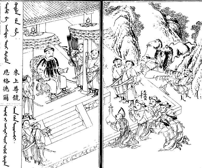 当时的蒙古人的语言只停留在口头,还没创立文字。在对外征伐的过程中,成吉思汗借鉴了回鹘的文字,创立了蒙古文字。这就是今天的蒙古语书写的前身。