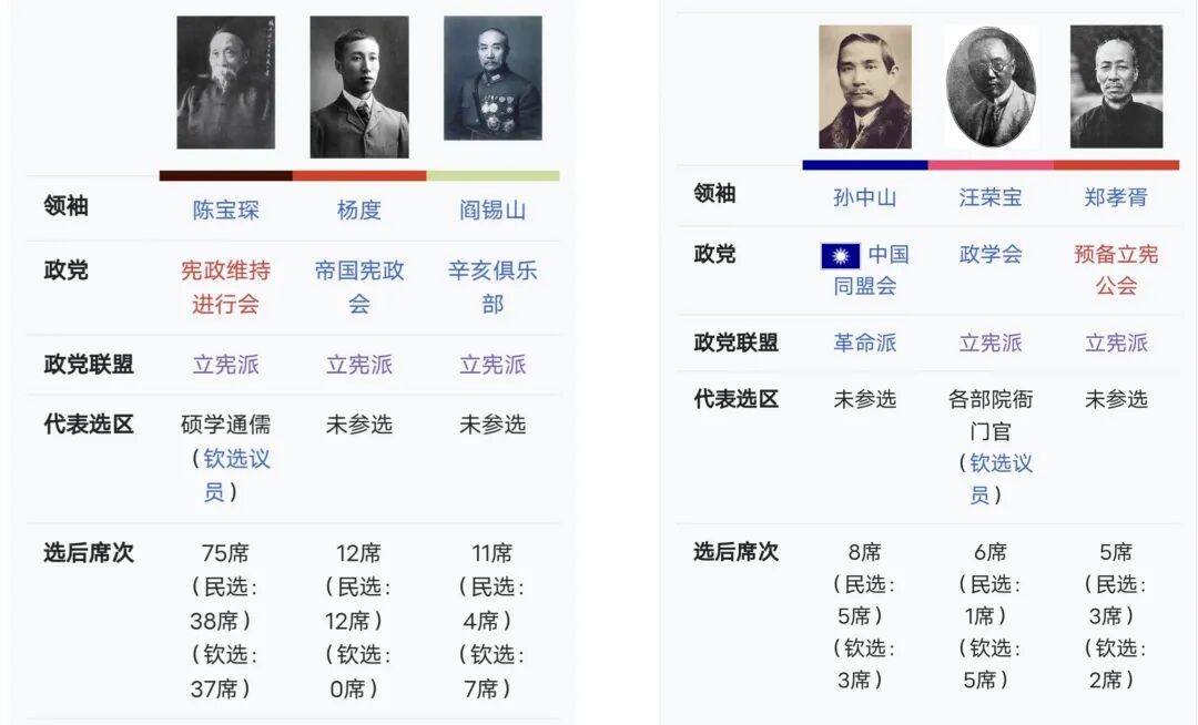 1910年9月1日,清朝资政院(议会)举行第一次开院礼。议员200名,钦选、民选各一半。由于新疆未参与选举,故民选议员减少2员,钦选也相应减少2人,第一届资政院员额196人,满族皇族溥伦出任首任总裁(议长)。