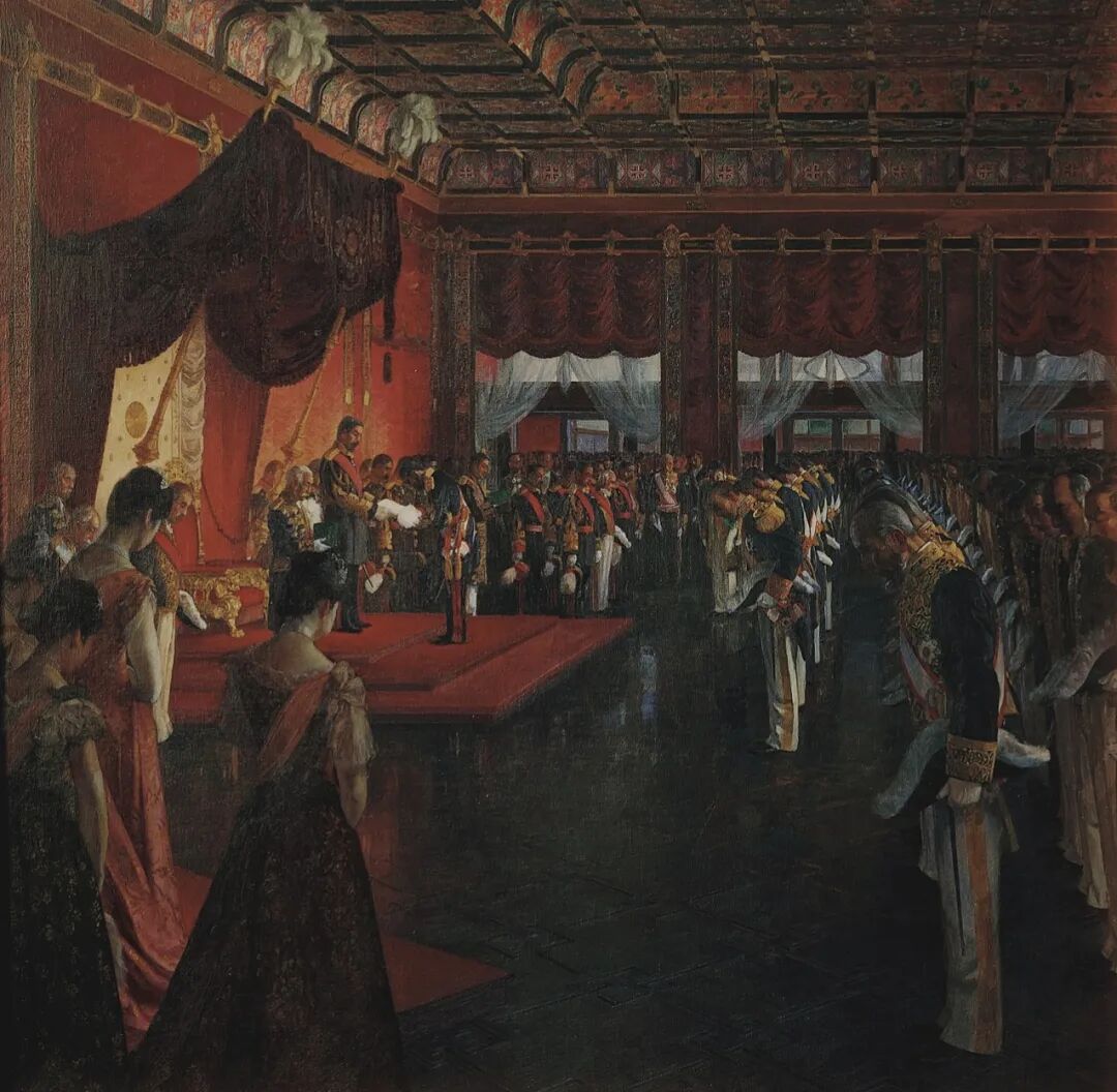 1908年,清政府颁布《钦定宪法大纲》,规定大清帝国万世一系,同时宣布“十年后实行立宪”。但这只是清廷做的表面文章,意图缓和立宪派的情绪。