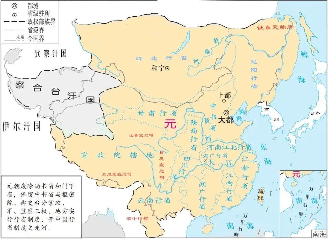 1260年,忽必烈在汗位争夺战中胜出,成为蒙古帝国第5代大汗。长年负责汉地事务的忽必烈决定借鉴汉人的行政经验,将中书、门下、尚书三省事务统归于中书省。在地方上设置行中书省作为行政机构,简称行省。行省制度的开创,丰富了中国行政管理体系。