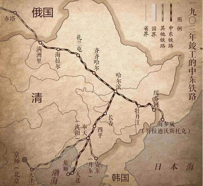 1894年日本取得甲午战争的胜利,控制了朝鲜半岛。清朝衰落至斯,不但保不住千年藩属朝鲜,还引来日俄两国对东北的觊觎。沙俄先下手为强,逼迫清朝开放东北,取得修筑铁路和驻军的权利。日本认为沙俄此举损害了自己的利益,挑起了1905年的日俄战争。