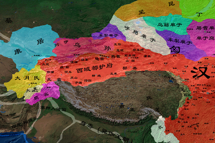 两汉时期一度拥有50多个藩属国,包括南匈奴,乌桓等等。公元前60年,西汉设立西域都护府,管辖着乌孙、大月氏等藩属国,以及汉人移民建立的多个城镇,标志着中国对西域正式开始行使主权。