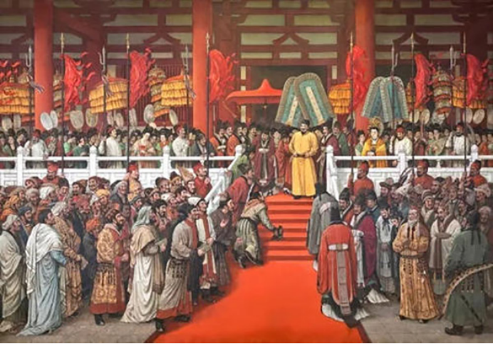 唐朝是汉朝之后又一个强盛王朝,640年开设安西都护府,到8世纪初,管辖面积超过了汉朝的西域都护府。唐玄宗时期的藩属国多达70多个,其中不少是主动前来朝贡的。