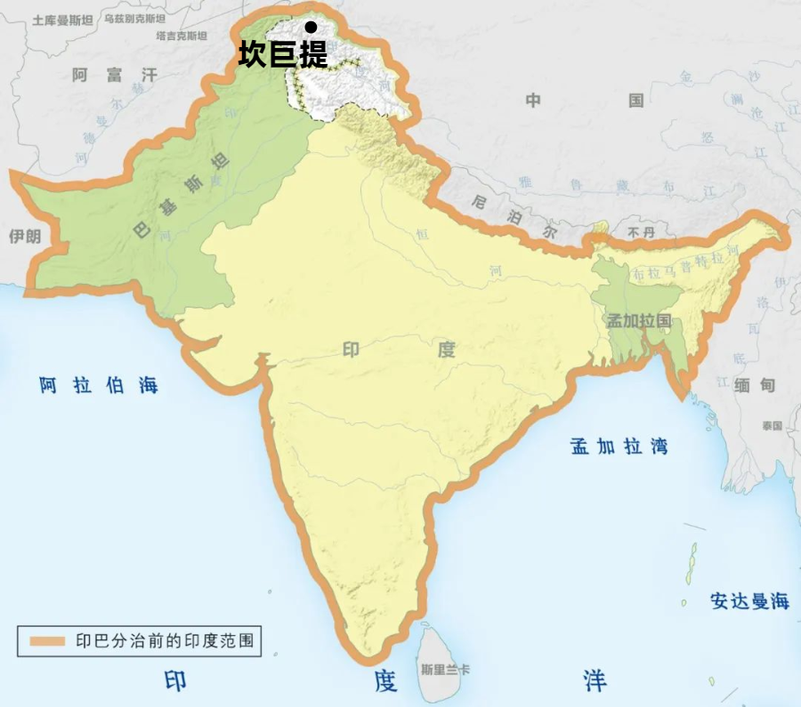 1947年,英国提出印巴分治方案,诞生了印度和巴基斯坦两个国家。原则上,以印度教为主的邦组成印度,以伊斯兰教为主的邦组成巴基斯坦。