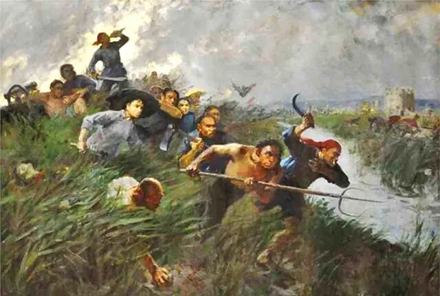 ▲少数英勇抗抵的清军仍无法战胜先进的英国军队