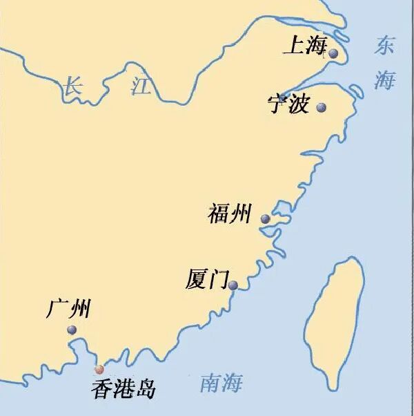 ▲《南京条约》规定的五个通商口岸