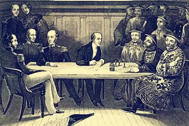 于是,清廷被迫妥协,以一纸《南京条约》结束了鸦片战争,割地赔款、开放通商口岸等等。英军以定海为抵押品,声称等清廷履行完《南京条约》规定的赔款,才能归还定海,清廷无奈只有接受。