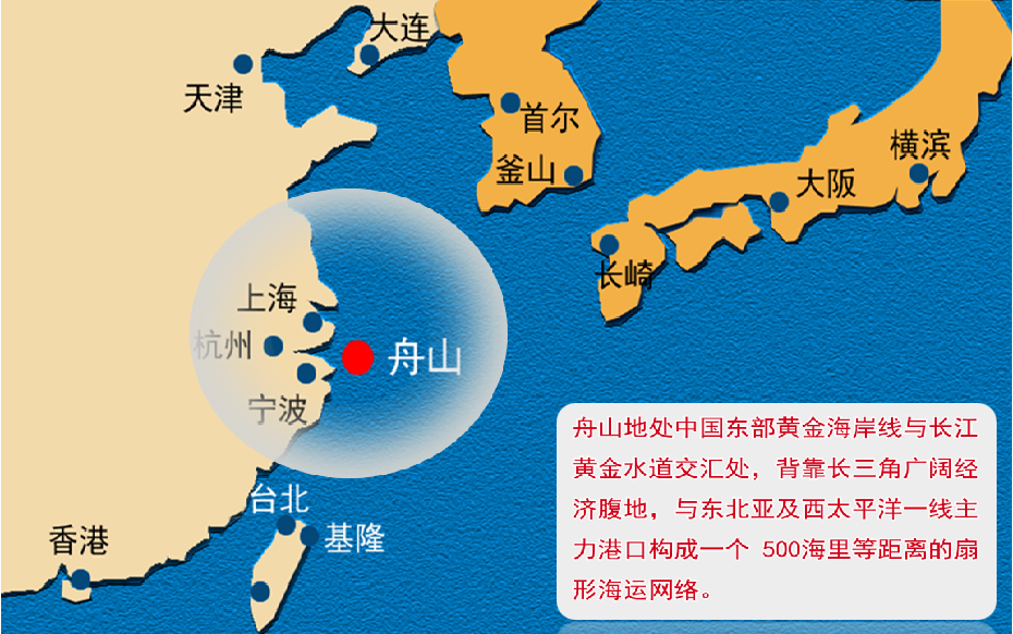 ▲舟山位于中国沿海航海的中心枢纽位置