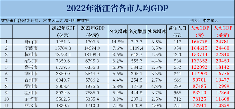 ▲2022年浙江各市人均GDP,舟山位居第一