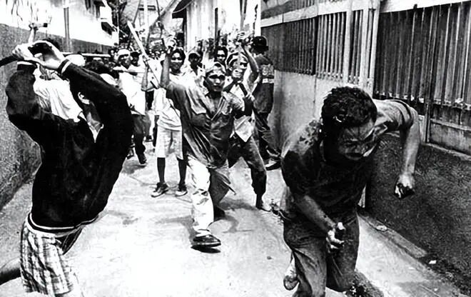 苏哈托上台后,无端指责当地华人是红色政权的支持者,意图颠覆印尼。激进的印尼民族主义者、伊斯兰主义者大肆攻击华人,上万华人丧生。