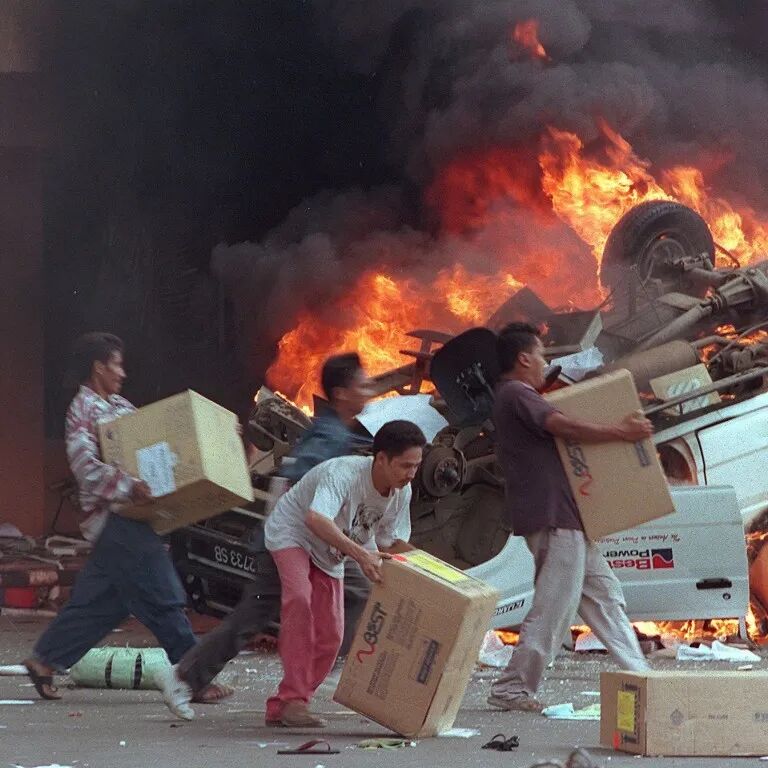执政31年的苏哈托无力解决危机中的印尼经济,反倒是试图转移社会矛盾,拥有较多社会财富但无自保能力的华人再度成为牺牲品。