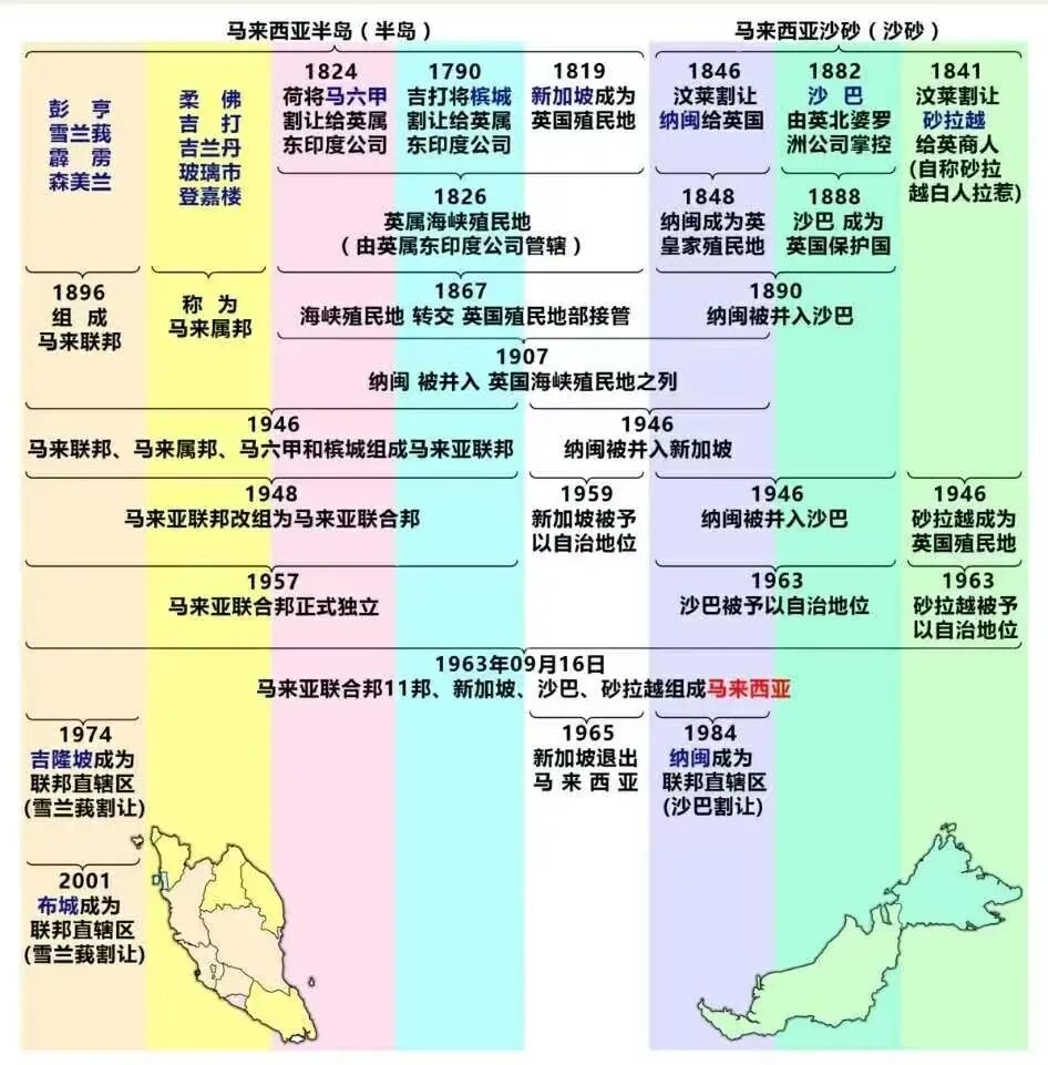 印尼独立前后,英法等国在东南亚的殖民体系也相继瓦解,其中华人相对集中的马来亚、新加坡两地与沙捞越和沙巴组建了马来西亚。