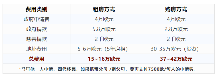 那如何拿到马耳他绿卡呢?有两种方式,一种是租房+捐款,一种是买房+捐款。租房+捐款的成本最低,大概100多万人民币左右。买房+捐款就要根据房价来定,总的花费大概在40万欧元左右。