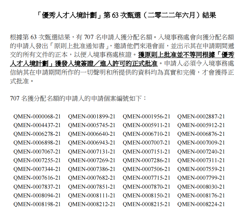 前些天香港入境处公布了优才计划第63次筛选结果,一共有707人被筛选出来,创造了历史新高,这七百多人中,也包括不少M叔的客户朋友。在这里M叔先恭喜最近成功获批的香港优才幸运儿们,很开心大家离落户香港又进了一步,接下来只要安心等待入境处的面试就好。