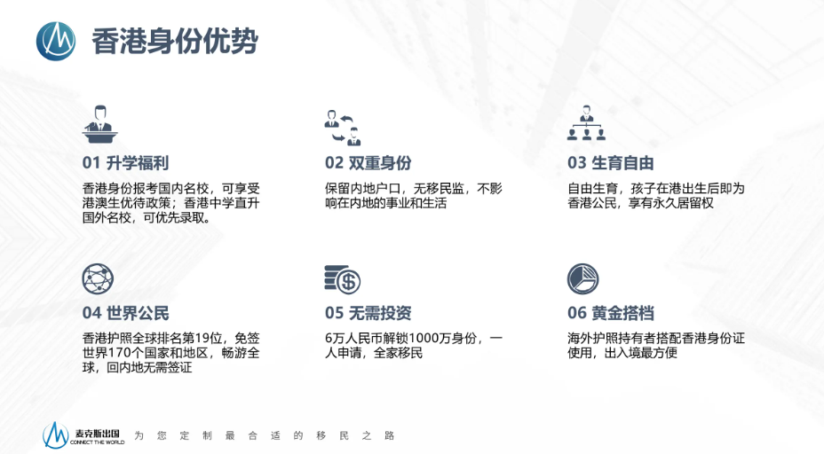 而且现在随着大湾区一体化的建设,香港身份在内地生活也是非常方便的,不仅可以自由定居,还可以享受政府给到的购房,税收上的优惠!