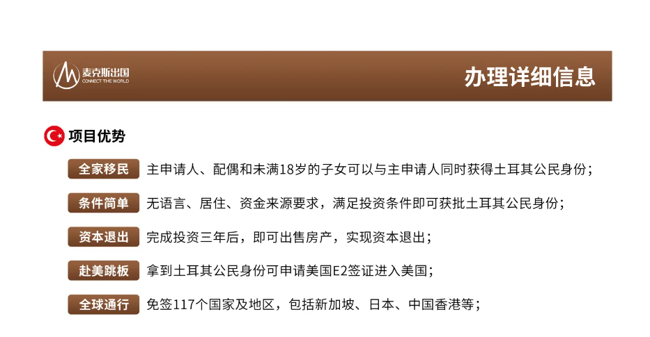 第一个就是土耳其的存款移民,根据土耳其《公民法案》规定,外籍人士在土耳其的银行存款达到50万美元,或者购买超过40万美元以上的房产,就可以直接成为土耳其公民。
