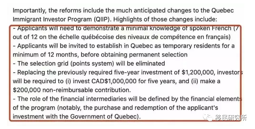 第三点是更新了投资要求,在2018年之前,要做魁省投资移民,只需要投80万加币到指定基金,五年后无息返还,18年之后涨价了,增加到120万加币,五年后无息返还。