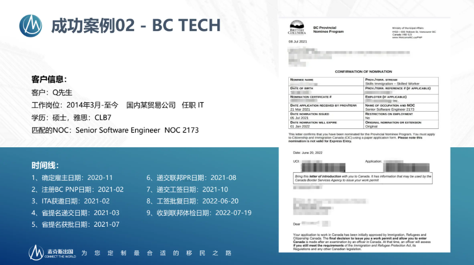 这个90分其实是往高了写的,前几个月只要80多分就能满足要求,并且每个月都会有2次邀请,也就是说针对IT行业的人才,BC省的需求是非常稳定的。