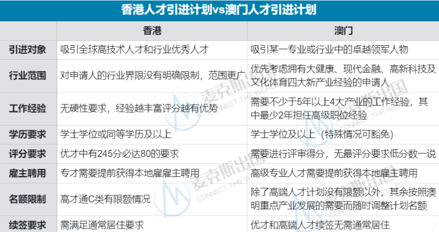 而澳门政策在这个点上就更有优势得多了,除了高级人才计划以外,高端人才以及优秀人才计划的续签都没有在澳通常居住这一要求。