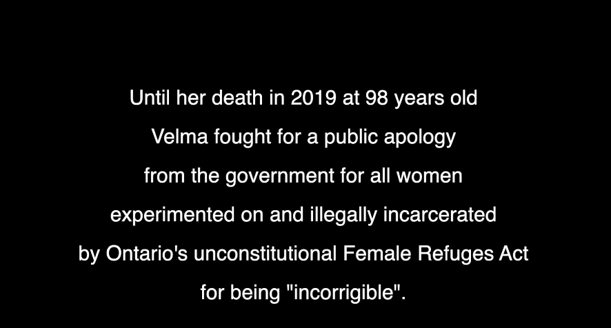 当时法官审判她时候,引用的是另外一条针对女性婚前性行为的恶法,Female Refugees Act,非常具有性别压迫的色彩。定罪之后,Velma Demerson就被关到了安大略省的女子监狱莫瑟教养院。