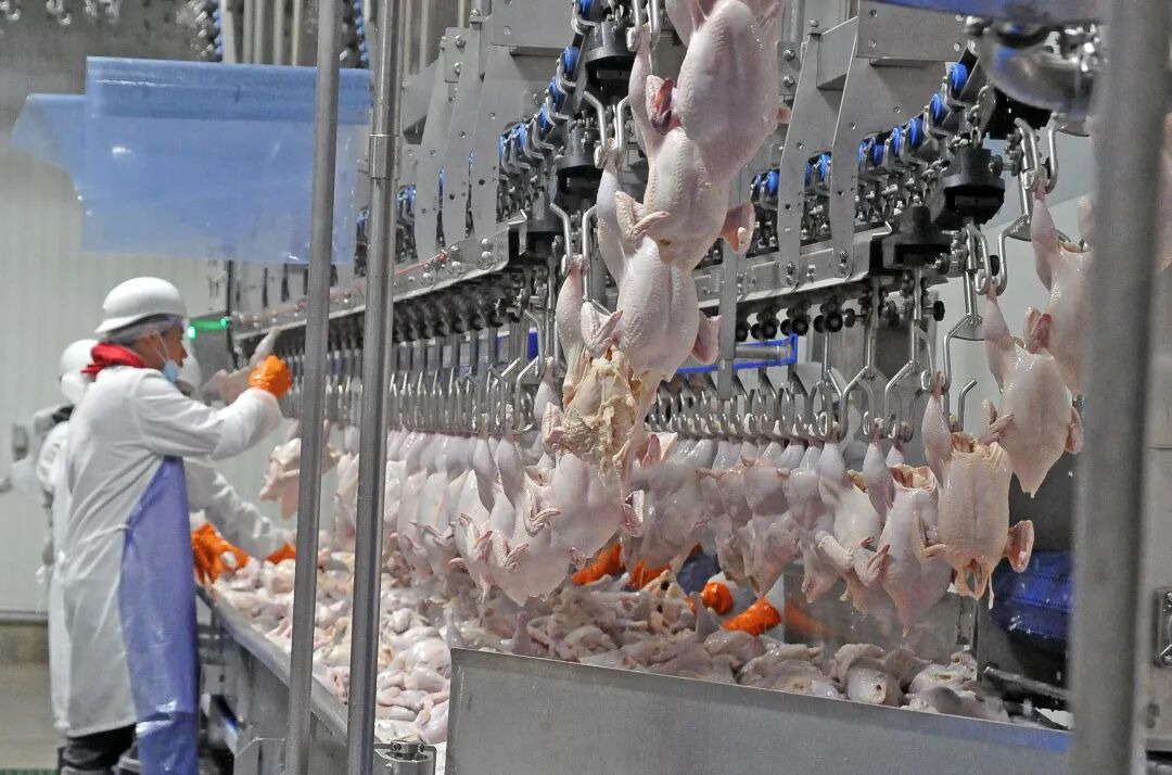 男女一般是有分工的,像挂鸡(把鸡整个拎起来挂在流水线的挂钩上)这类的工作一般就不会安排给女工,像切鸡胸,切鸡翅这类的工作女工会相对来说多一些。切是属于比较轻松工作了,手腕手指会有一点不舒服,一般女工会绑一个手腕带来工作。