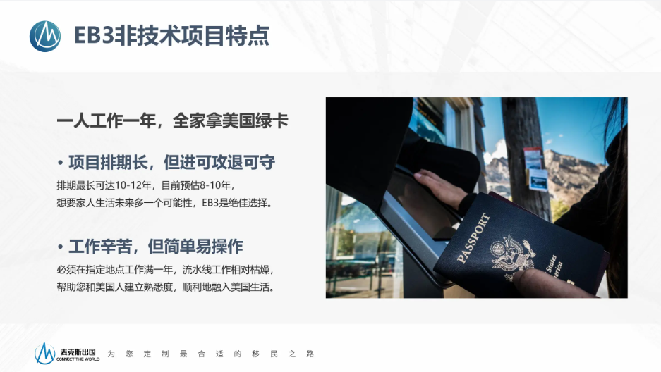 如果你不着急马上去国外的话,那就非常推荐EB3非技术项目了。