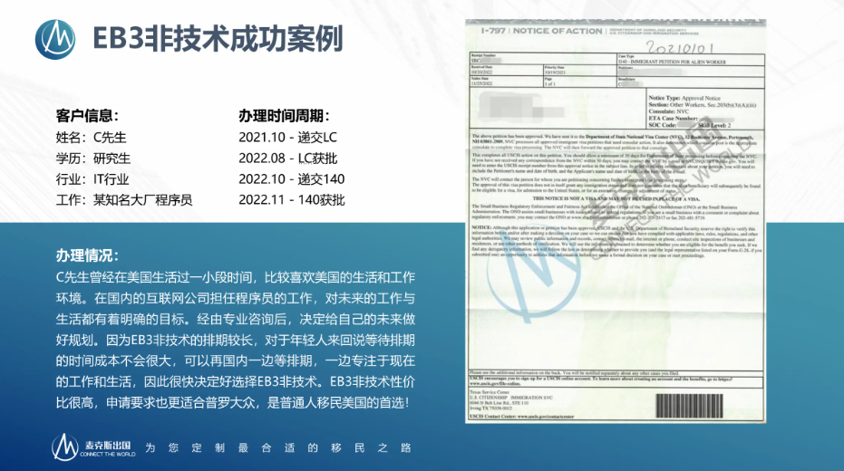 我们和身后的雇主强强联合,共同助力我们的客户实现移民梦想。M叔一直希望大家对EB3非移民技术能了解地更多更加透彻,长达8-10年的申请周期,需要我们、雇主和申请人一起陪伴协同走长征路。