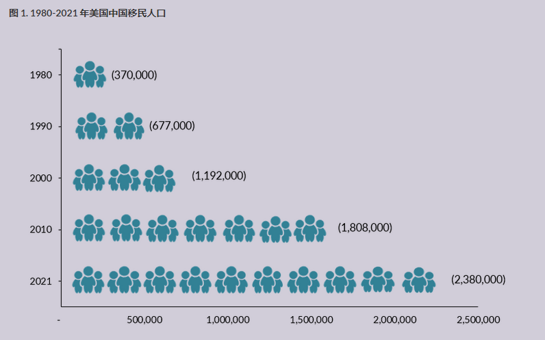 截至2021年,中国人移民美国的人数高达238多万,是美国移民中第三大来源群体,仅次于印度、墨西哥。