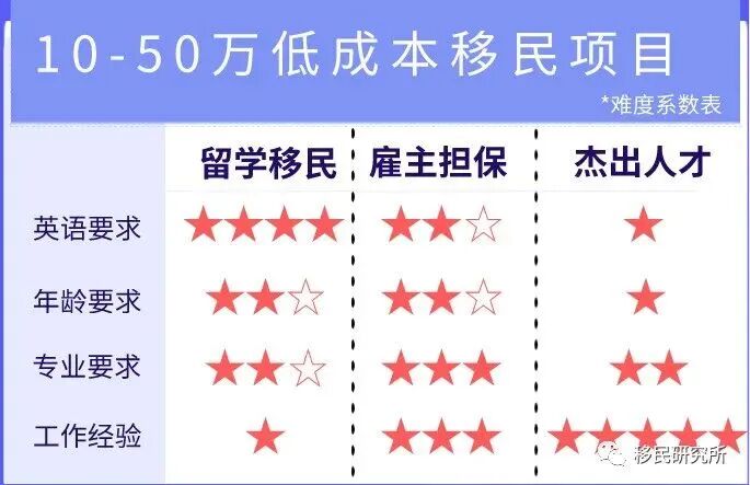如果把预算提高一点,在10万到50万以内去寻找项目,那么移民成功的概率会大大提高。