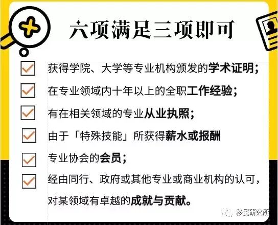 十条标准并不需要以凑数的方式凑得越多越好,移民的要求是满足其中三项便可,所以我们要选取自己最牛的三个维度来展现。