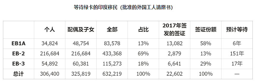 首先最根本的原因就是排期的问题,这块我们之前也提到了,印度人申请EB3需要等17年排期,EB2更是高达夸张的151年……
