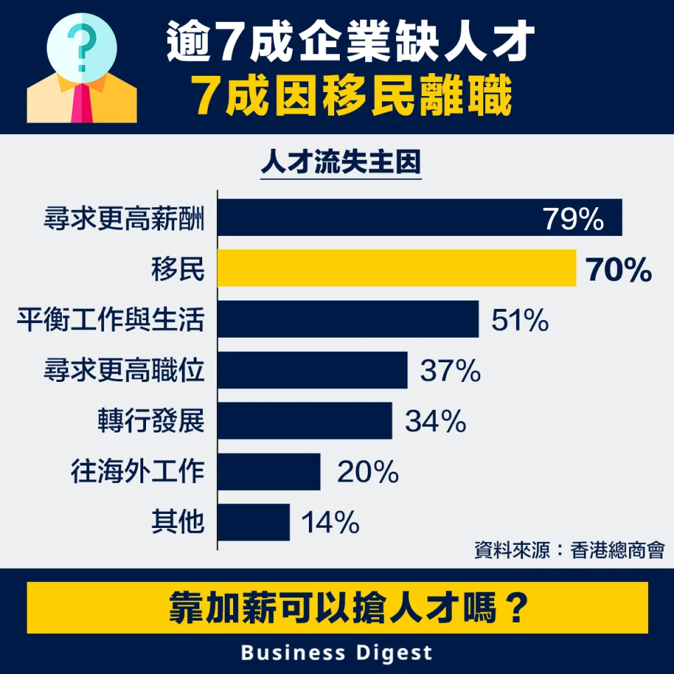 但“移民”原因的比重能够高达70%,也确确实实辅证了香港人才流失到了一个比我们想象中要严重的地步。