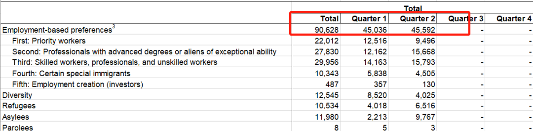 为什么这么说呢,一来,美国移民2022财年的目标是发放28万张职业移民绿卡,前两个季度已经发了9万多张了,Q3数据还没出来,但Q3、Q4的数据大概率不会太夸张。