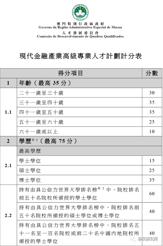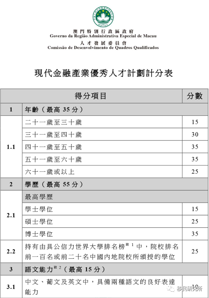 ▲澳门优秀人才计划打分表,完整版可私信获取
