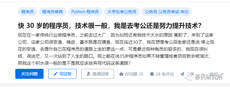 不知道是要回家考公还是努力提升技术,其实这样的案例还是非常具有普遍性的,