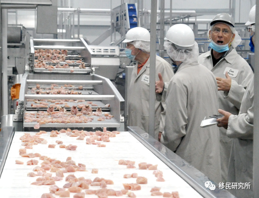 我们的客户当中,有一对夫妇就是办理这个项目去的美国,妻子在鸡肉加工厂里边上班,