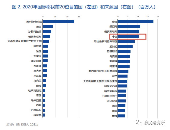 根据《2022年世界移民报告》给出的数据,我国移民海外的人数已经高达1073万人,名列全球移民人数的第四名。