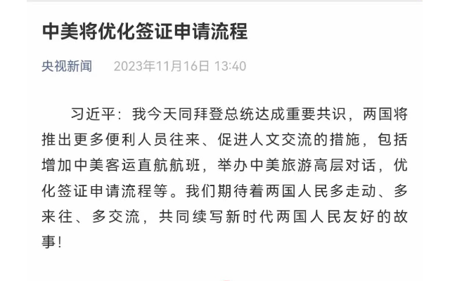所以由此可见,赴美签证将会逐步放宽是得到官方背书的,那么一旦中美会晤结果中涉及签证政策的改变,