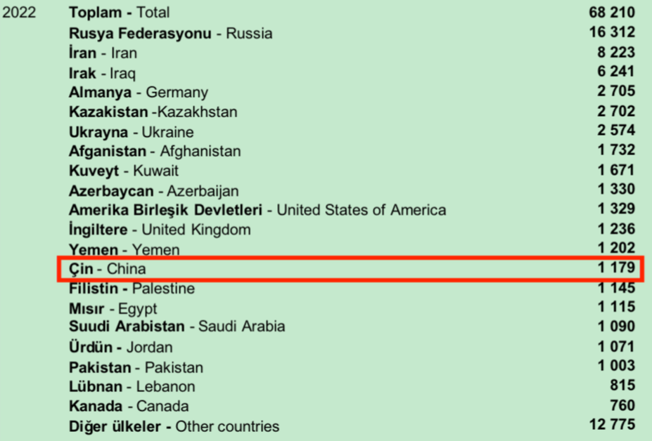 所以你可以看到,2020年,中国人在土耳其买了891套房产,2021年增加至963套,2022年又增加到了1179套。