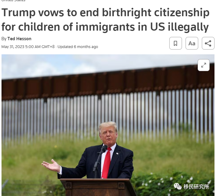 近期他甚至在采访中承诺,一旦当选,他将会在上任的第一天结束宪法赋予的出生公民权。