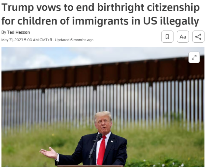 一旦自己竞选成功,并再次当上美国总统之后,一定会在上任的第一天就结束宪法赋予的出生公民权!