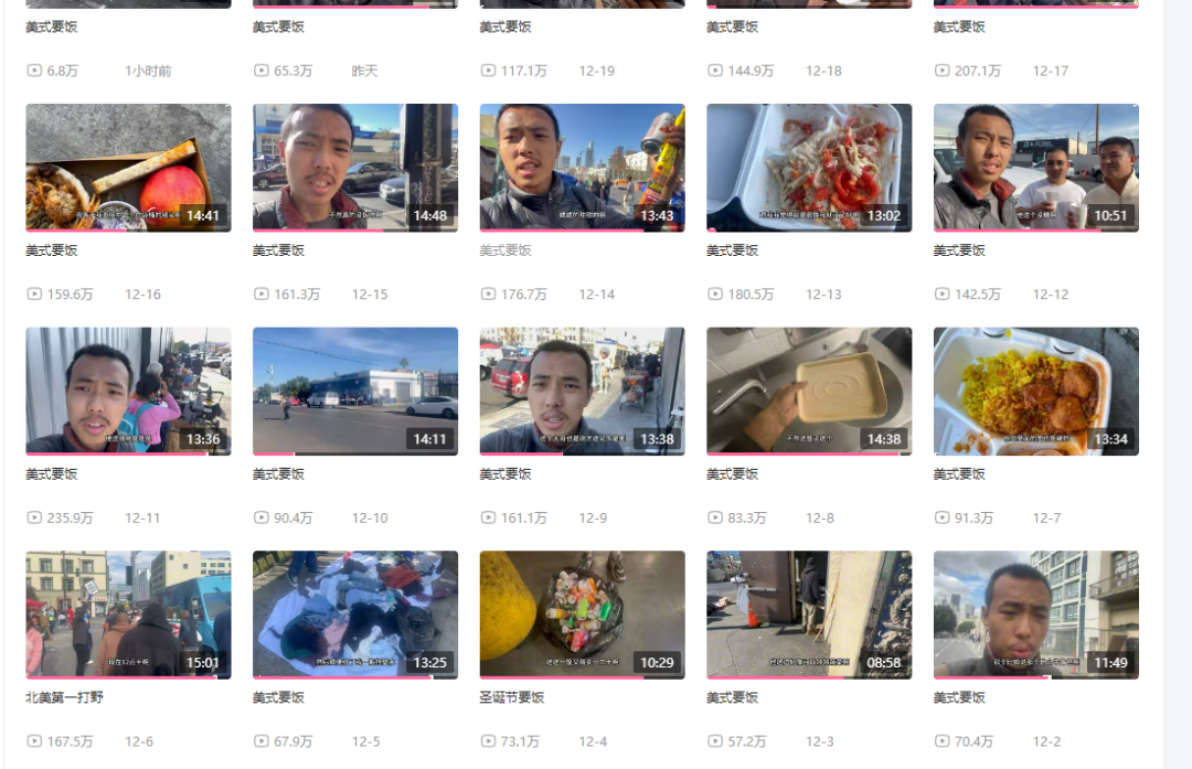 其主打的《美式要饭》系列,均集都能达到百万点击量,在B站上甚至能做到每天涨粉一万,成为百万Up主可以说是指日可待。