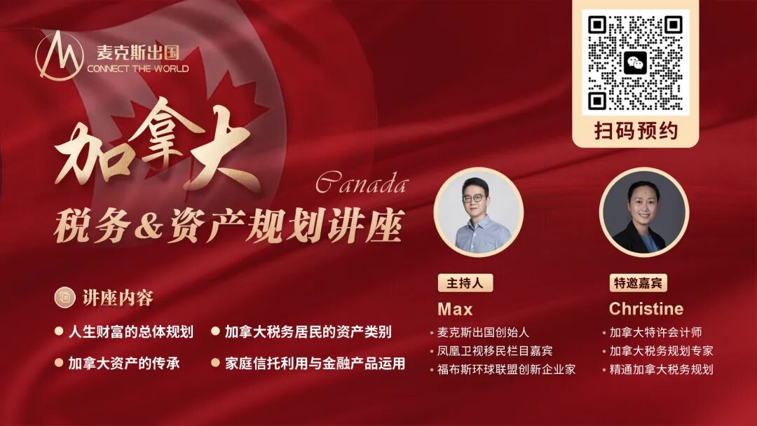 2024年1月10日15:00,麦克斯出国创始人Max将会联合加拿大税务规划专家、特许会计师Christine来一场线上直播。