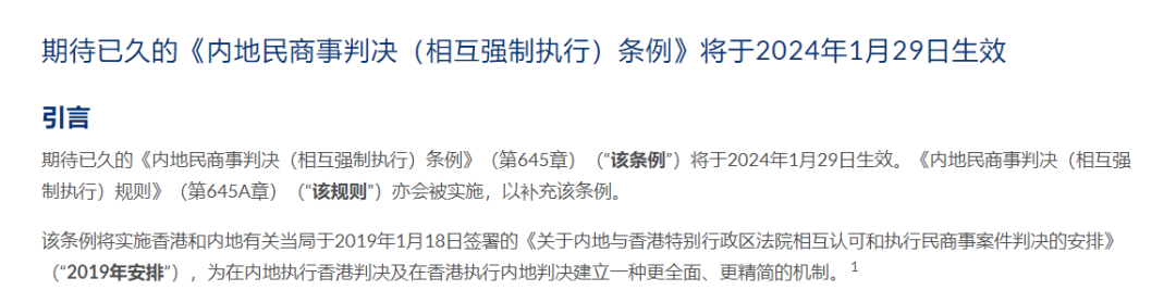 重磅消息来了,香港和内地互相认可并强制执行司法判决的相关政策,将会从2024年1月29日开始实施。