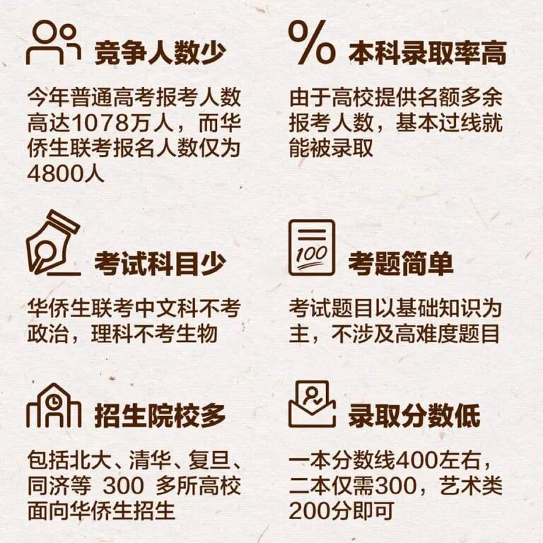拥有香港身份的孩子,想上大学根本不需要跟内地考生去挤高考这根独木桥,他们可以参加一个叫做华侨生联考的考试。