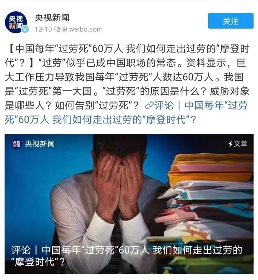 根据2016年的一项调查数据显示,中国每年“过劳死”的人数高达60万!