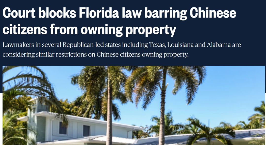 即禁止中国公民在当地购买房产与农业用地,已入籍美国或持绿卡的中国人除外。