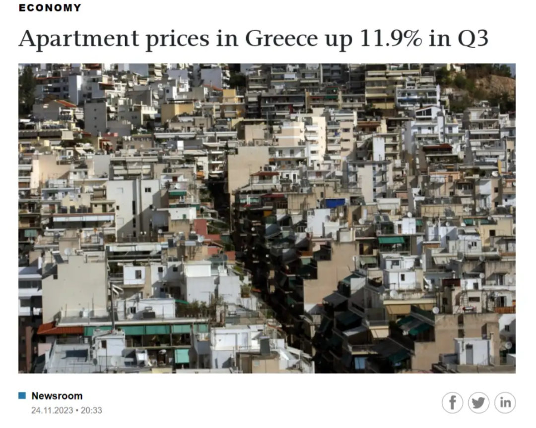 根据莱坊国际(Knight Frank)的最新调查显示,雅典的房价在2023年第三季度的房价涨幅位居全球第五位,平均涨幅高达12%,而房的出租回报可以达到3%-4%左右;